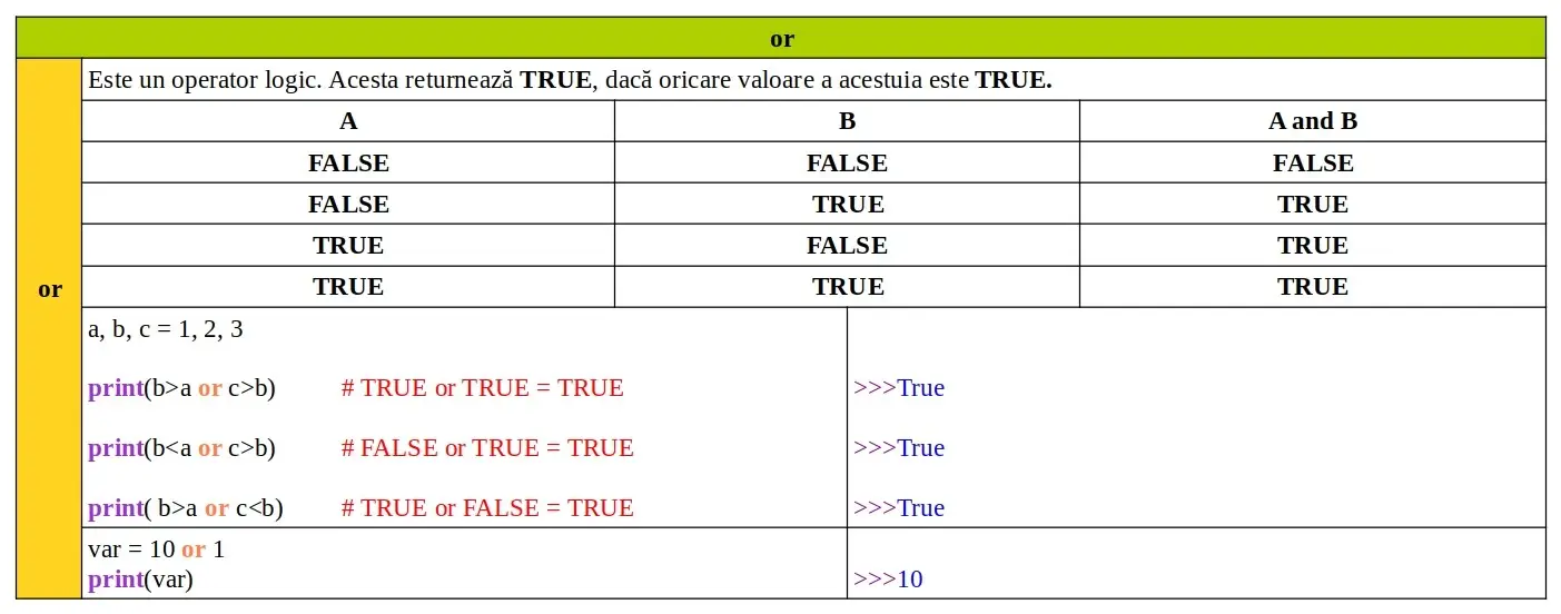 Cuvinte cheie Python: or